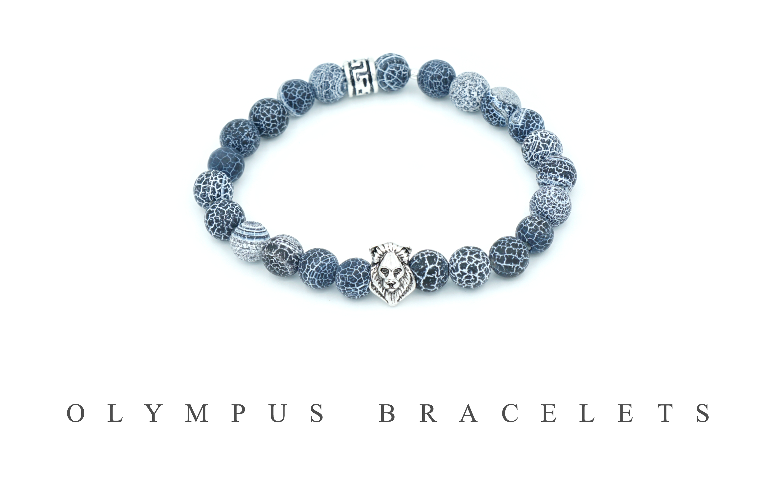 WiOB: Artemis is made with Black Frosted Agate Matte Gemstones, a Silver Lion Head and enclosed in a Tibetan Silver Spacer.