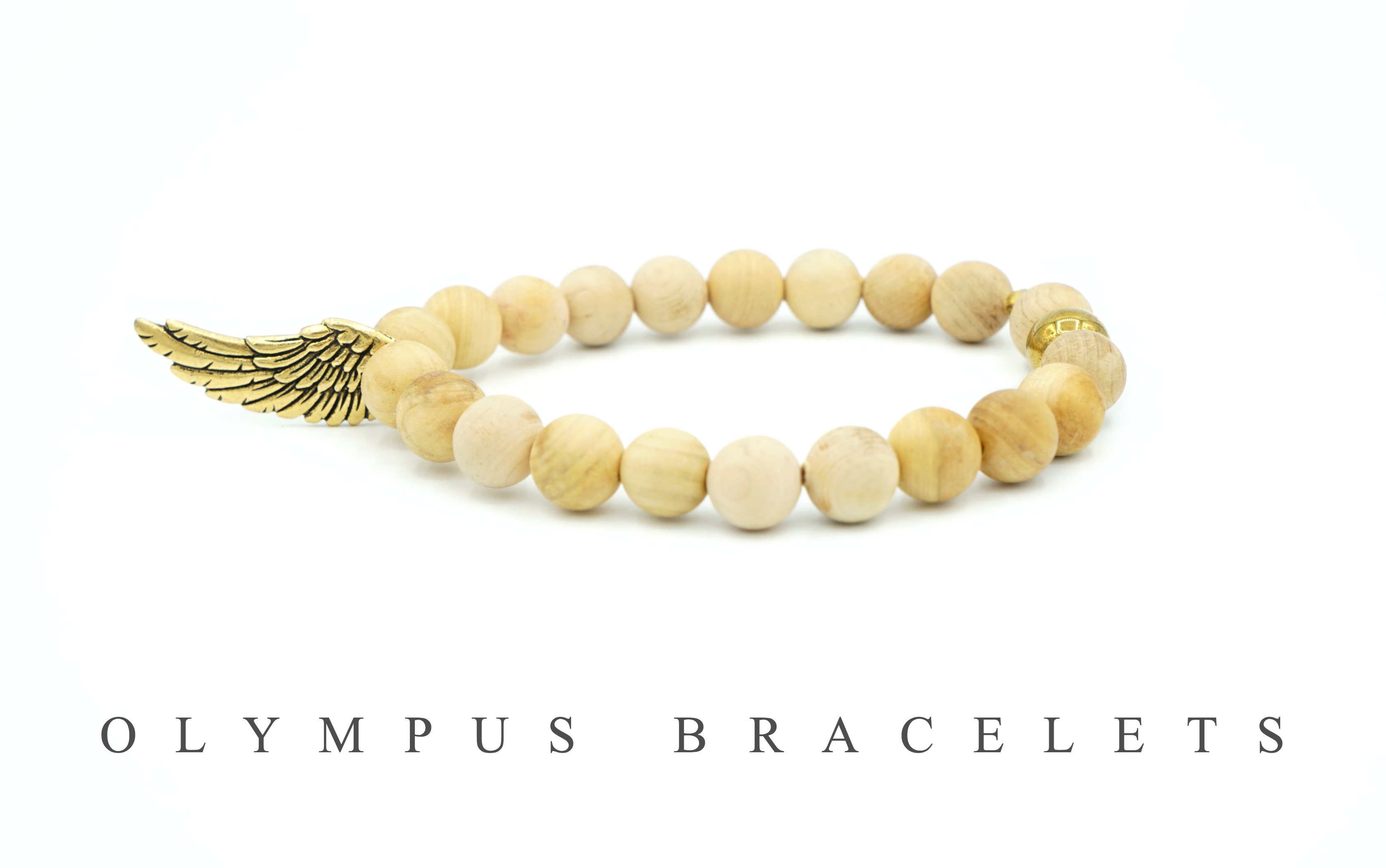 WiOB: Psamathe is made with Natural Round Polished Rosewood Beads, a Gold Plated Hematite Gemstone and our Signature Olympian Wing, made by TierraCast®.