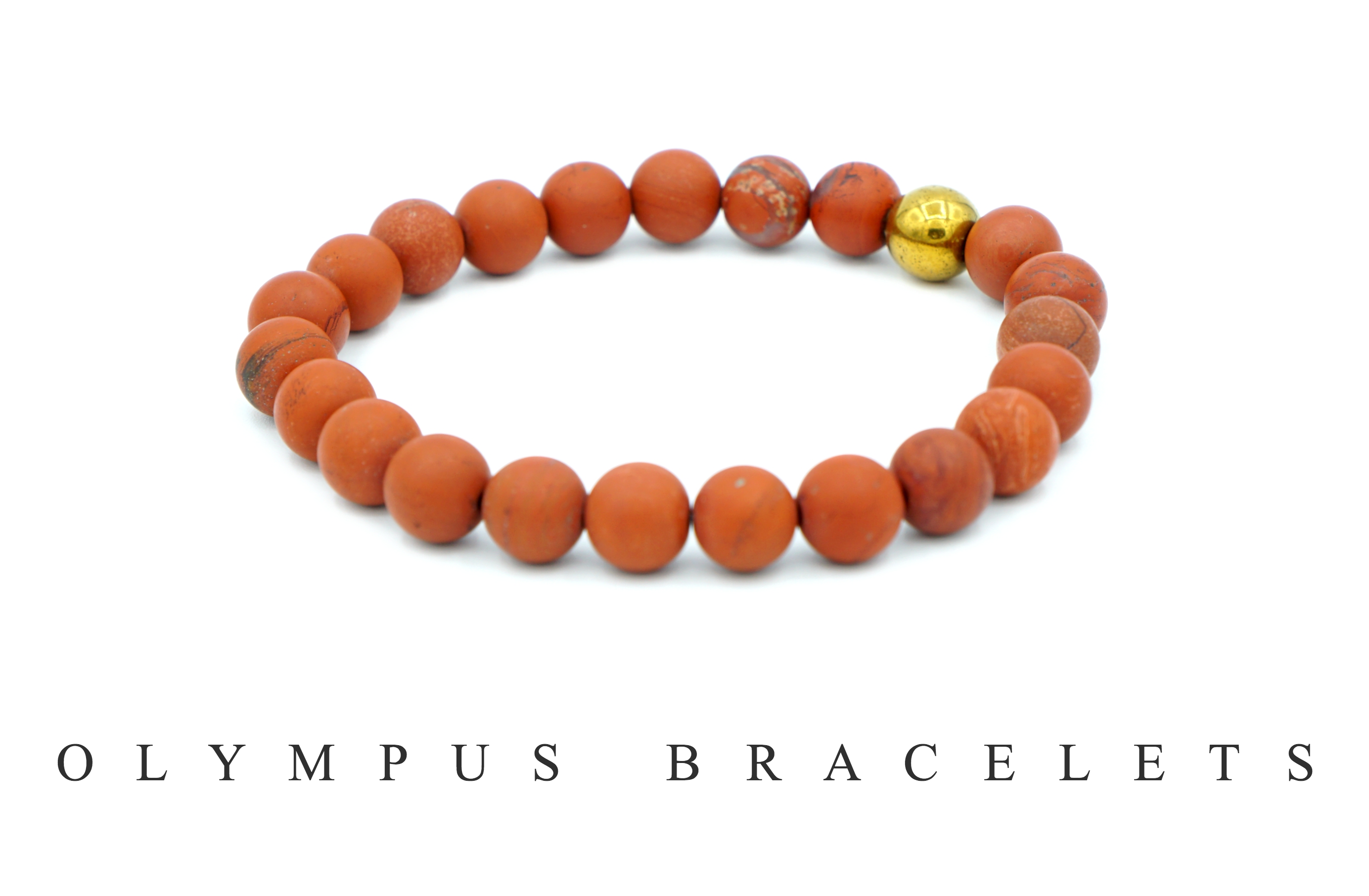 WiOB: Ares is Made with Natural Poppy Jasper Gemstones, a Gold Plated Hematite Gemstone and our Gold Olympian Siegel made by TierraCast®.